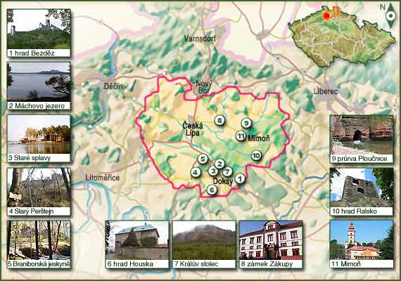 ...krajem romantických básníků... Od lesnatých skalních údolí Kokořínska přes hluboké lesy, prosvětlené hladinou Máchova jezera, a přes zámek v Zákupech až k městu Česká Lípa s fragmenty původního středověkého vodního hradu je v Máchově kraji krásně v každém ročním období. Básník Karel Hynek Mácha (1810-1836), čelní představitel českého romantismu, si zdejší kraj oblíbil natolik, že právě sem, do kraje pod impozantním hradem Bezděz, zasadil děj svého nejznámějšího díla, básně Máj. "...děj se koná u města Hiršberg mezi horami," uvádí sám autor v takzvaném Výkladu Máje, "...na nichž hrady Bezděz, Pernštejn, Houska a v dálce Roll k východu, západu, poledni a půlnoci okazují..." Hiršberk byl tehdejší název pro Doksy, Pernštejn je Starý Berštejn a Roll označuje hrad Ralsko. Místní se svému básníkovi odměnili; Velký rybník byl přejmenován na Máchovo jezero, z Mělníka přes Kokořínský důl, Housku a Bezděz až do Doks vede oblíbená výletní trasa zvaná Máchova cesta, a od roku 1961 celá oblast nese básníkovo jméno - Máchův kraj.